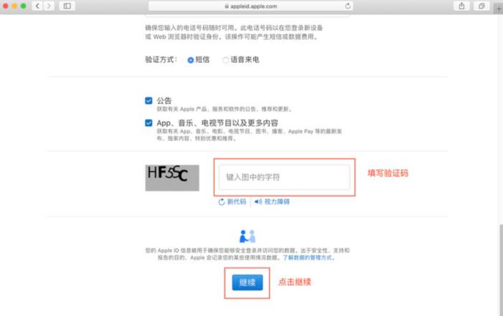 4、手機(jī)收到驗(yàn)證碼,同樣也填寫在頁面上,點(diǎn)繼續(xù)。