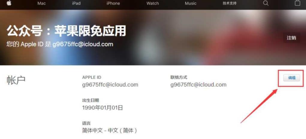 2、把注冊好了的國內(nèi)Apple ID從http://appleid.apple.com登錄,登錄后進(jìn)入到蘋果賬號的管理中心,點(diǎn)擊“編輯”賬戶。