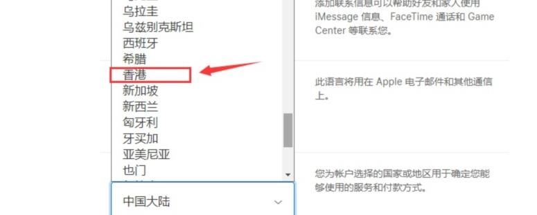 3、在賬戶的「國家或地區(qū)」中找到「香港」選擇即可。