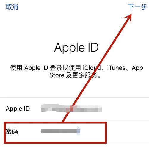 6、最后輸入這個蘋果id賬號所對應(yīng)的密碼并點(diǎn)擊下一步就可以了。