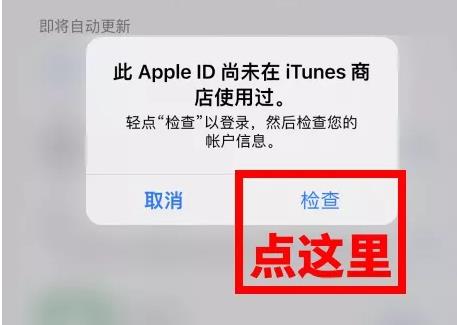 6、滑到屏幕頂部,用新建的香港 Apple ID 登錄,在彈窗中點(diǎn)【檢查】