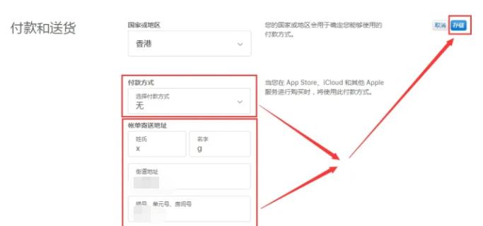 5、付款方式選擇“無”,賬單寄送地址隨便填寫,如果怕填寫錯誤,就按照下圖填寫一樣。填寫完成之后,點擊“儲存”。