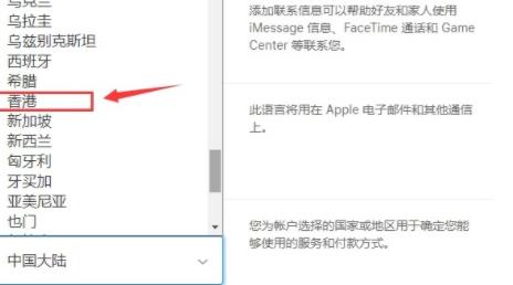 3、在賬戶的「國家或地區(qū)」中找到「香港」選擇即可。