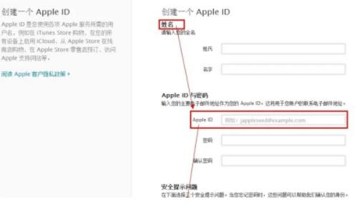 2、輸入姓名,最好輸入您的真實(shí)姓名以便以后忘記了Apple ID,可以用姓名來(lái)找回!依次填寫(xiě)好Apple ID與密碼,Apple ID要以郵箱地址來(lái)注冊(cè),再填寫(xiě)好安全提示問(wèn)題跟答案,這個(gè)非常重要!以后如果忘記了Apple ID與密碼可以憑此找回。