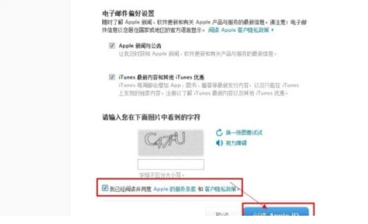 3、填寫(xiě)好所有信息后,勾上“我已經(jīng)閱讀并同意 Apple 的服務(wù)條款 和 客戶隱私政策”,點(diǎn)擊“創(chuàng)建 Apple ID”按鈕,如果信息輸入無(wú)誤,系統(tǒng)會(huì)提示您Apple ID已經(jīng)創(chuàng)建好了。