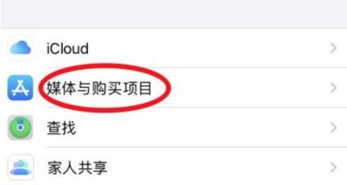 3、在Apple ID界面,點(diǎn)擊媒體與購買項(xiàng)目選項(xiàng)進(jìn)入。