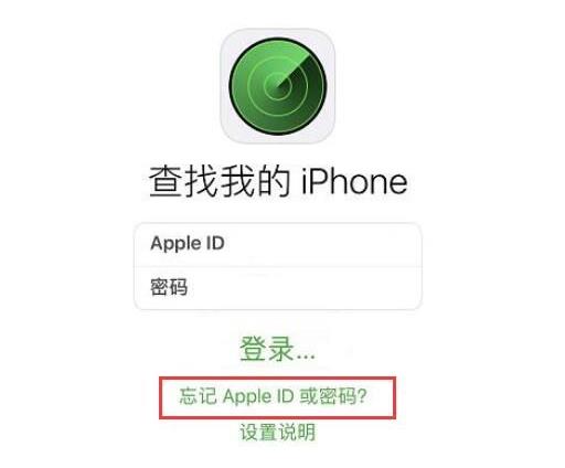 打開【查找我的 iPhone】應(yīng)用,出現(xiàn)登錄屏幕時,確?!癆pple ID”欄位為空,如果看到其它用戶名,請將它抹掉。點(diǎn)擊下方的忘記 Apple ID 或密碼,然后根據(jù)屏幕上的提示來操作,進(jìn)行重置密碼。