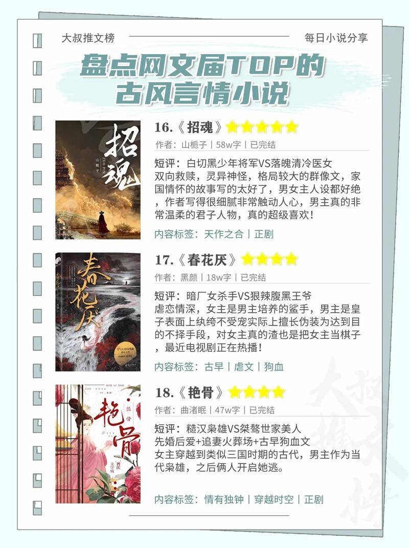 本篇文章給大家談?wù)劯哔|(zhì)量10本的古代言情推薦,以及高分古代言情對應(yīng)的知識點,希望對各位有所幫助,不要忘了收藏本站喔。
