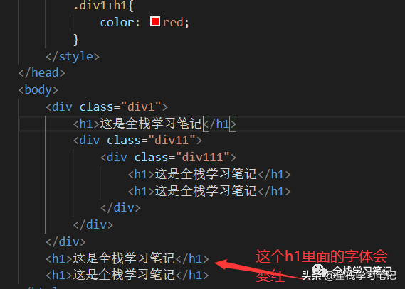這個選擇器讀作“選擇緊接在div1后面的h1標(biāo)簽,并且是一個”,這個選擇器也一樣,可以和前面的子元素選擇器一起使用。