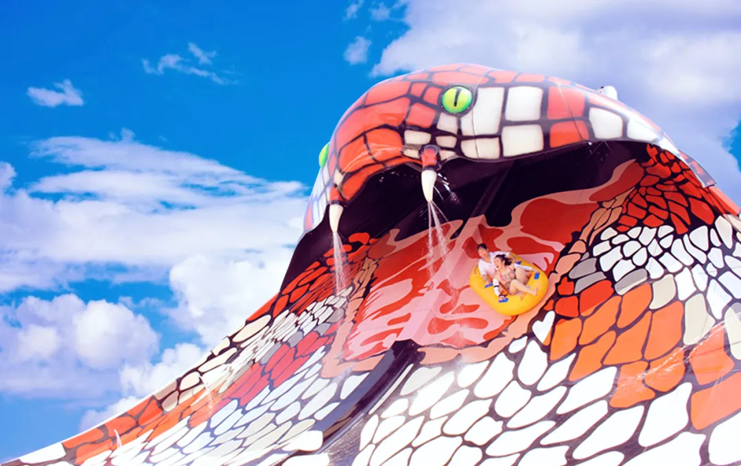 歡樂風(fēng)暴有不少設(shè)施都是以蛇為主題的,比如這個眼鏡王蛇水滑道,眼鏡蛇吐著信子,張開大口等著你被甩過去,怕蛇星人看到簡直要窒息,玩這個項(xiàng)目絕對是身心雙重考驗(yàn)。