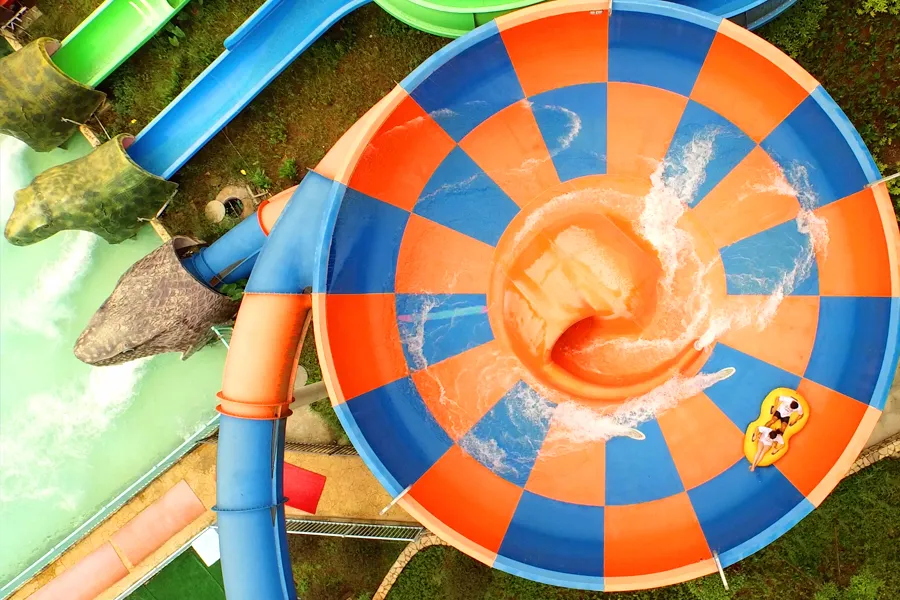 比較刺激的項(xiàng)目就是風(fēng)雨同舟、大浪版、超級大碗、懸壺滑道這幾個項(xiàng)目。管道項(xiàng)目基本都是坐在特別設(shè)計的浮圈中,沿半封閉滑道從十幾米高臺快速下滑,讓人腎上腺素飆升。