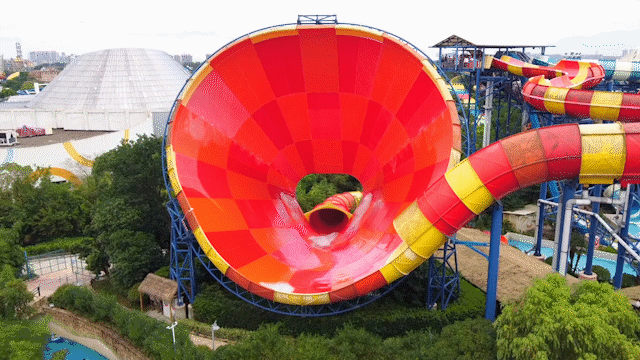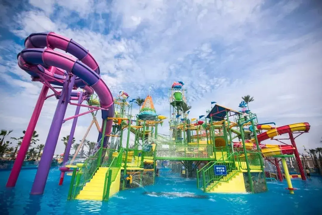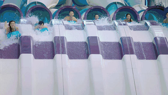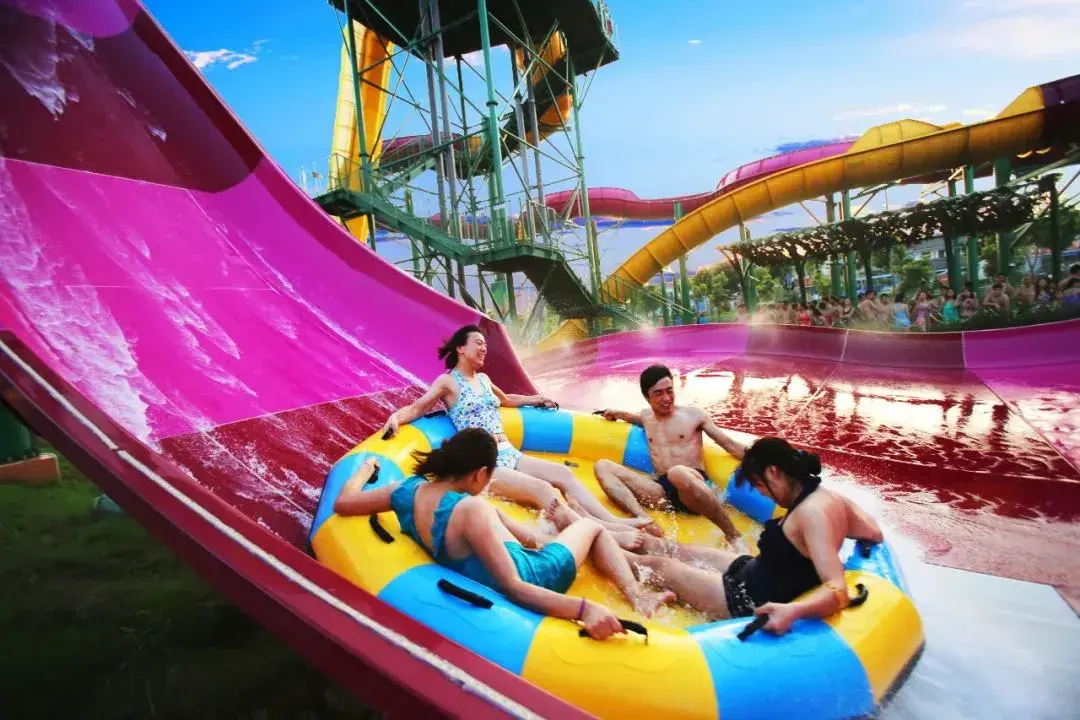 歡樂谷旗下的水上樂園,就在上海歡樂谷隔壁,水陸可以一起打卡。膽大的必玩17米高、近90°垂直管道的極速水蟒,號稱水上跳樓機(jī),啟動瞬間垂直降落,隨后滑入反轉(zhuǎn)的水環(huán)中,猶如坐過山車一樣。