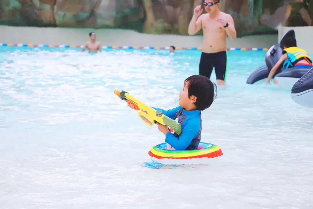 還有專門為低齡兒童準(zhǔn)備的兒童戲水池,水深只有15厘米,小小寶貝們也可以放心玩耍。