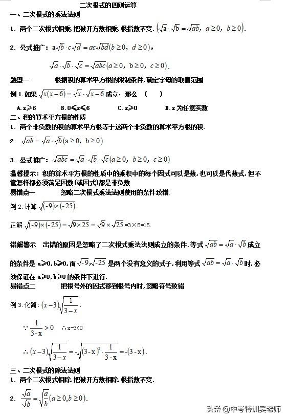 例1.如果成立√x×(x-6)=√x×√x-6,那么?( )