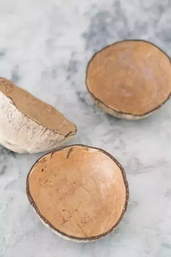 吃完了椰子殼,將表皮上的纖維清理干凈,最好用砂紙把邊緣打磨干凈,可以拿來(lái)做一些小零食和一些零碎的小物件。