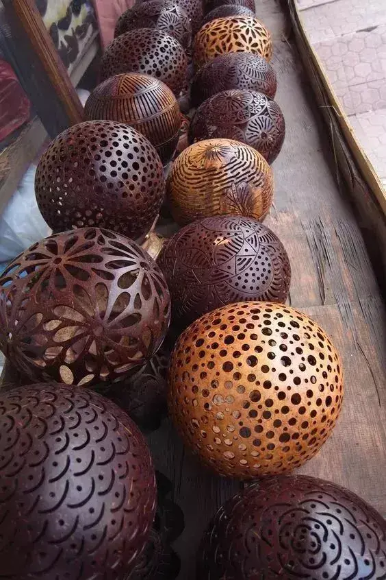 如果有心,椰子殼還可以做成各式各樣的容器,絕對(duì)的純天然,不用擔(dān)心各種材料的有毒物質(zhì),而且人們也將這些椰子殼做得非常有意思。