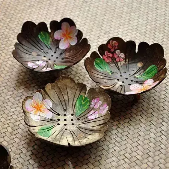 還可以把椰子殼篆刻成各種漂亮的形狀,像是打磨成一個(gè)專屬的肥皂盒,看著可真是精美!