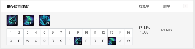 推薦主Q副E的加點方式,Q技能為主要輸出技能所以主加,E技能則可以提供控制。