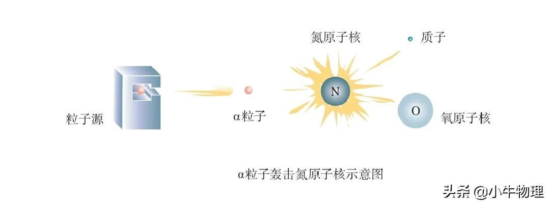 1919年,盧瑟福用鐳放射出的α粒子轟擊氮原子核,從氮原子核中打出了一種新的粒子(圖)。