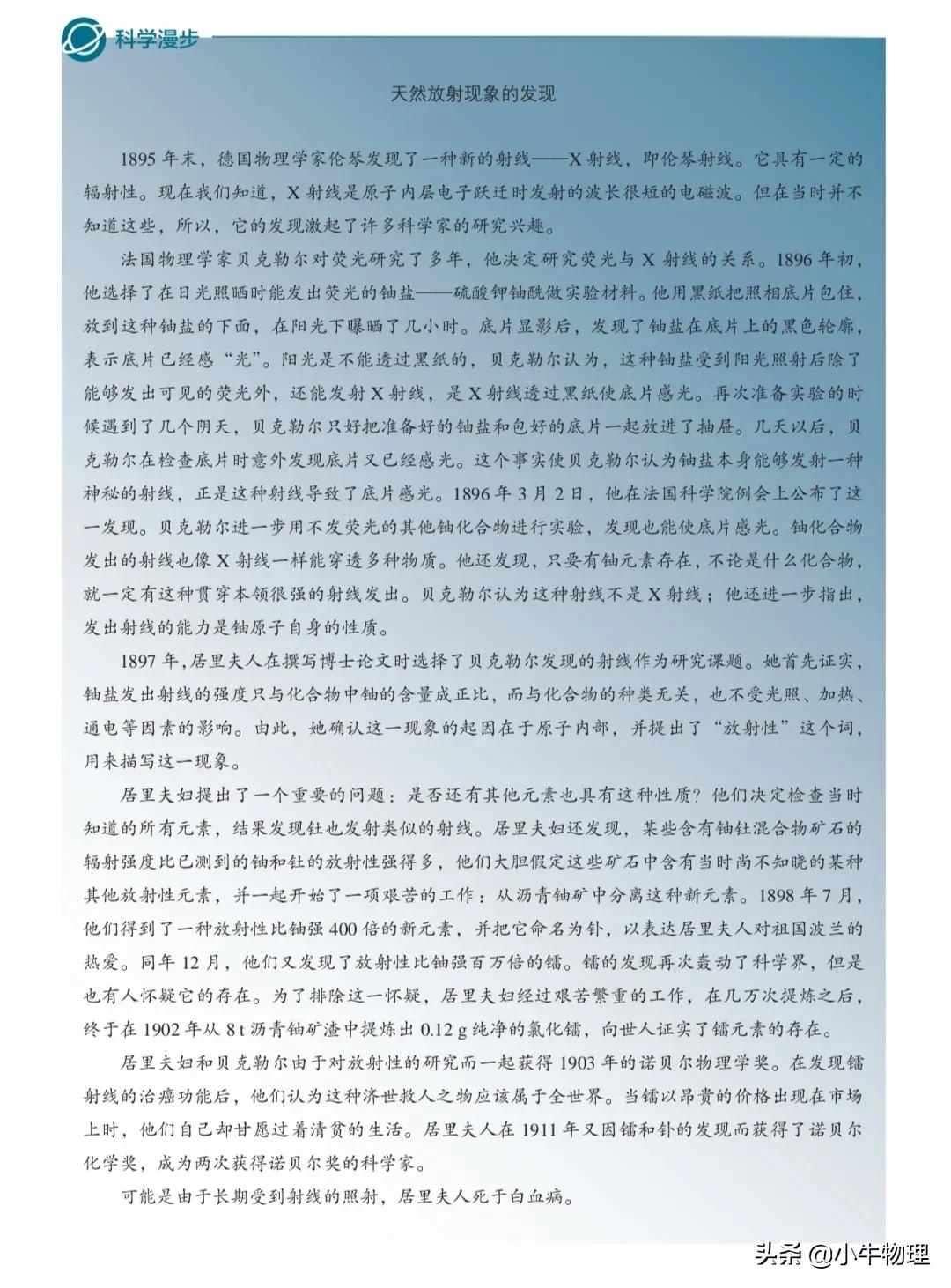 于是,人們把這三種射線分別叫作α射線、射線和y射線。