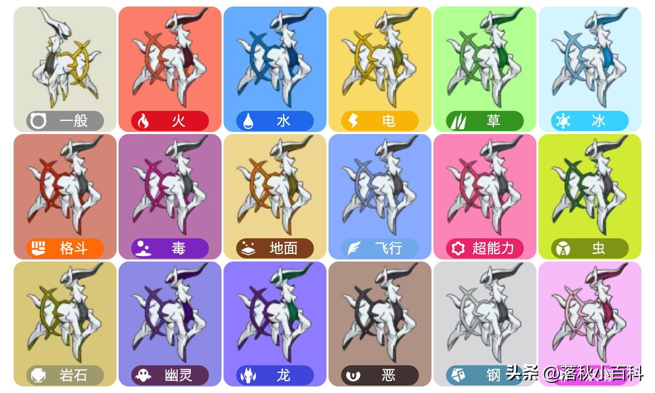 阿爾宙斯可以用石板或Z純晶變化成任何屬性。阿爾宙斯有18種不同的形態(tài),沒有攜帶道具或攜帶其他道具時、以及使用凈空石板后是一般屬性,在攜帶石板或屬性Z純晶時會變化為道具對應(yīng)屬性的形態(tài),每種形態(tài)只有外形顏色會根據(jù)其屬性而有所不同。使用傳說石板后,外表與未攜帶道具時相同。