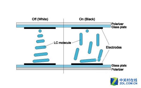 當(dāng)電流通過(guò)晶體管產(chǎn)生電場(chǎng)變化時(shí),造成LCD分子偏轉(zhuǎn),改變光線(xiàn)的偏極性,再利用偏光片決定像素的明暗狀態(tài)。