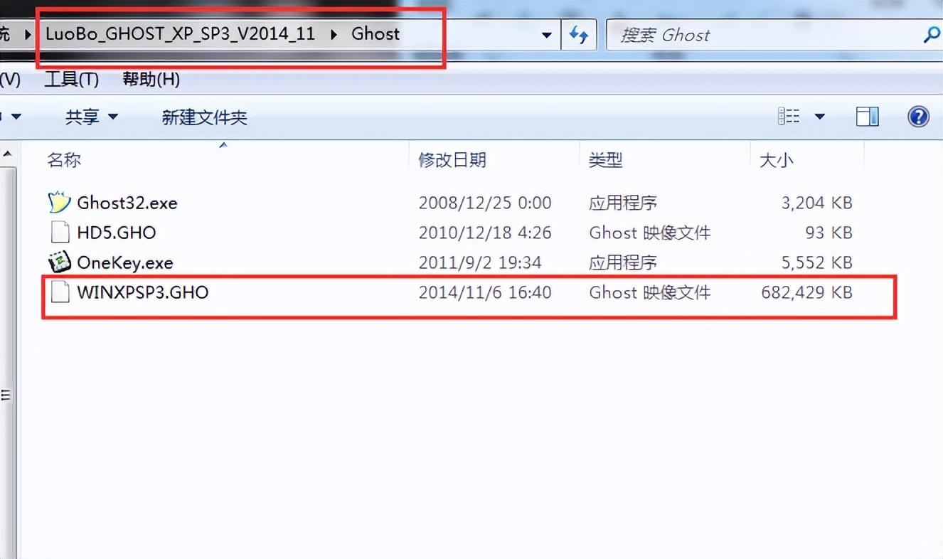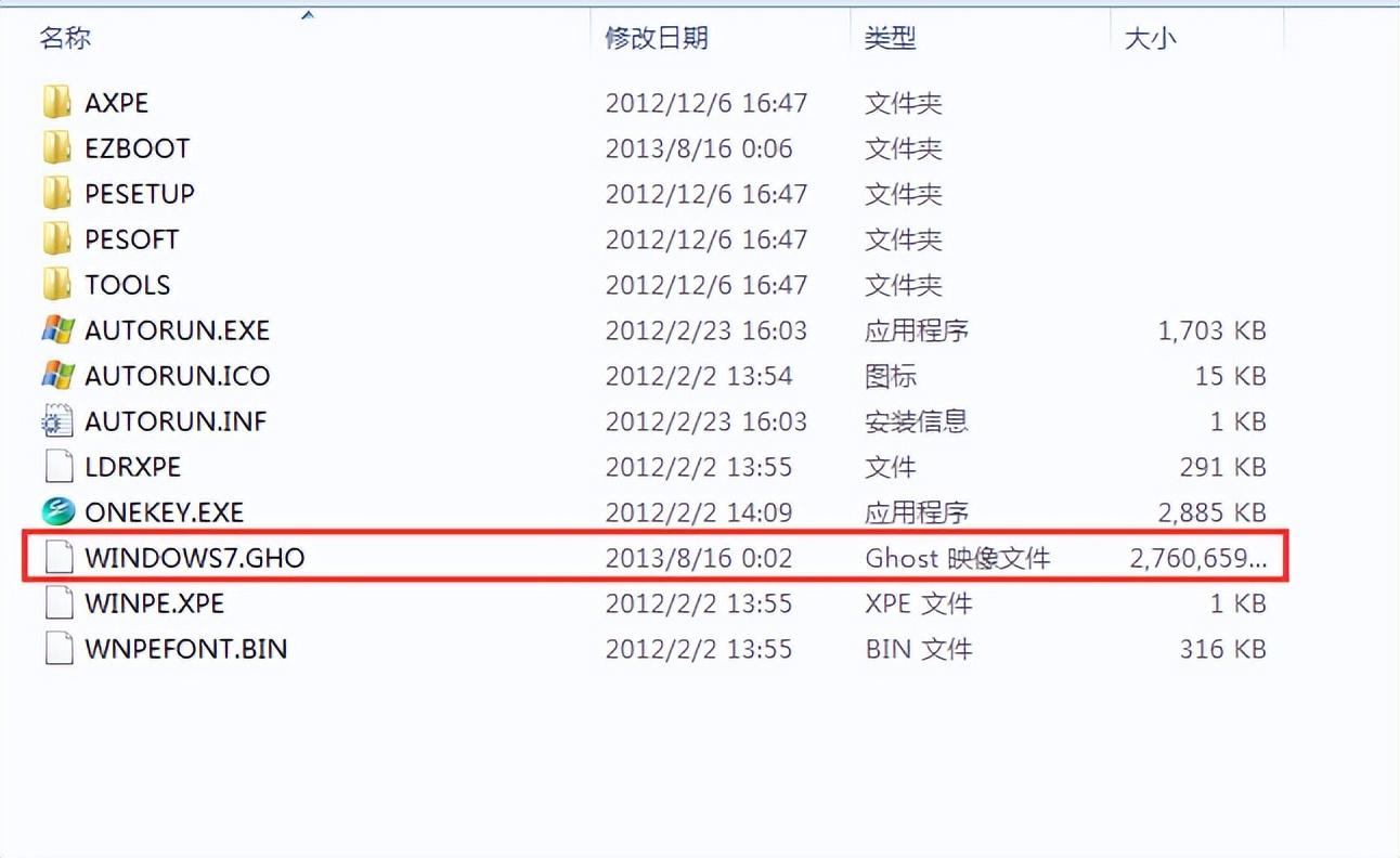 3、查找gho文件不但要看清前面的文件名,也應(yīng)該注意文件的大小,這樣就能確保不出差錯(cuò)了,一般win7的系統(tǒng)都在2-3g左右。