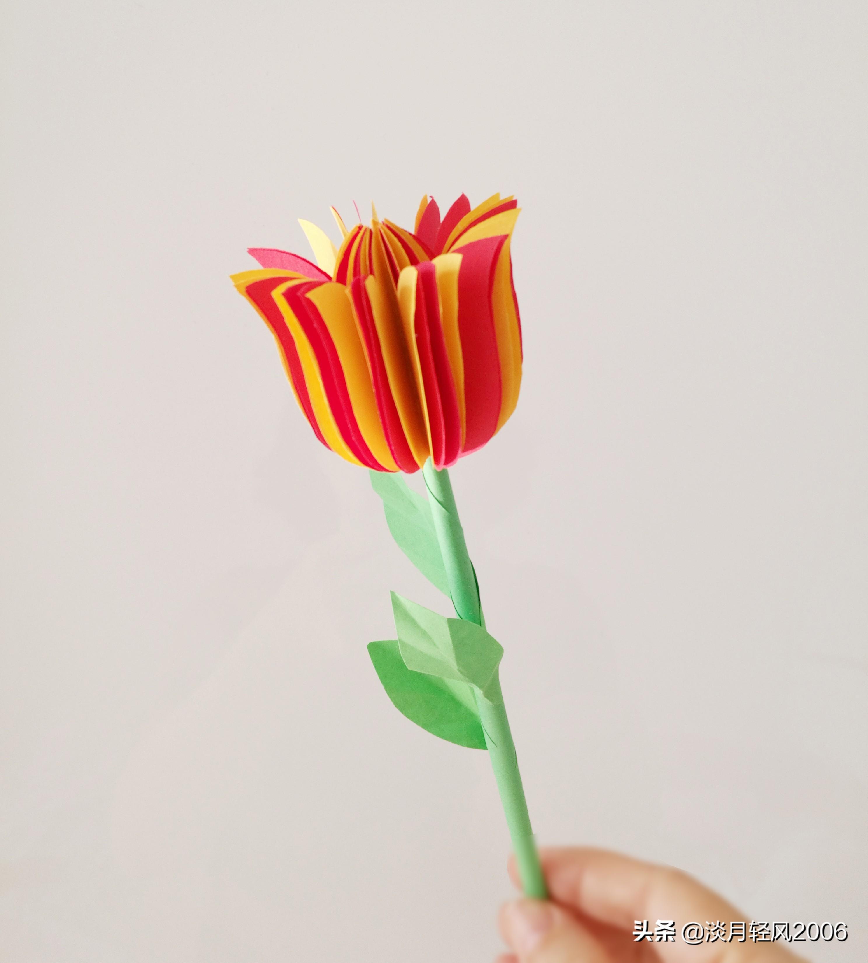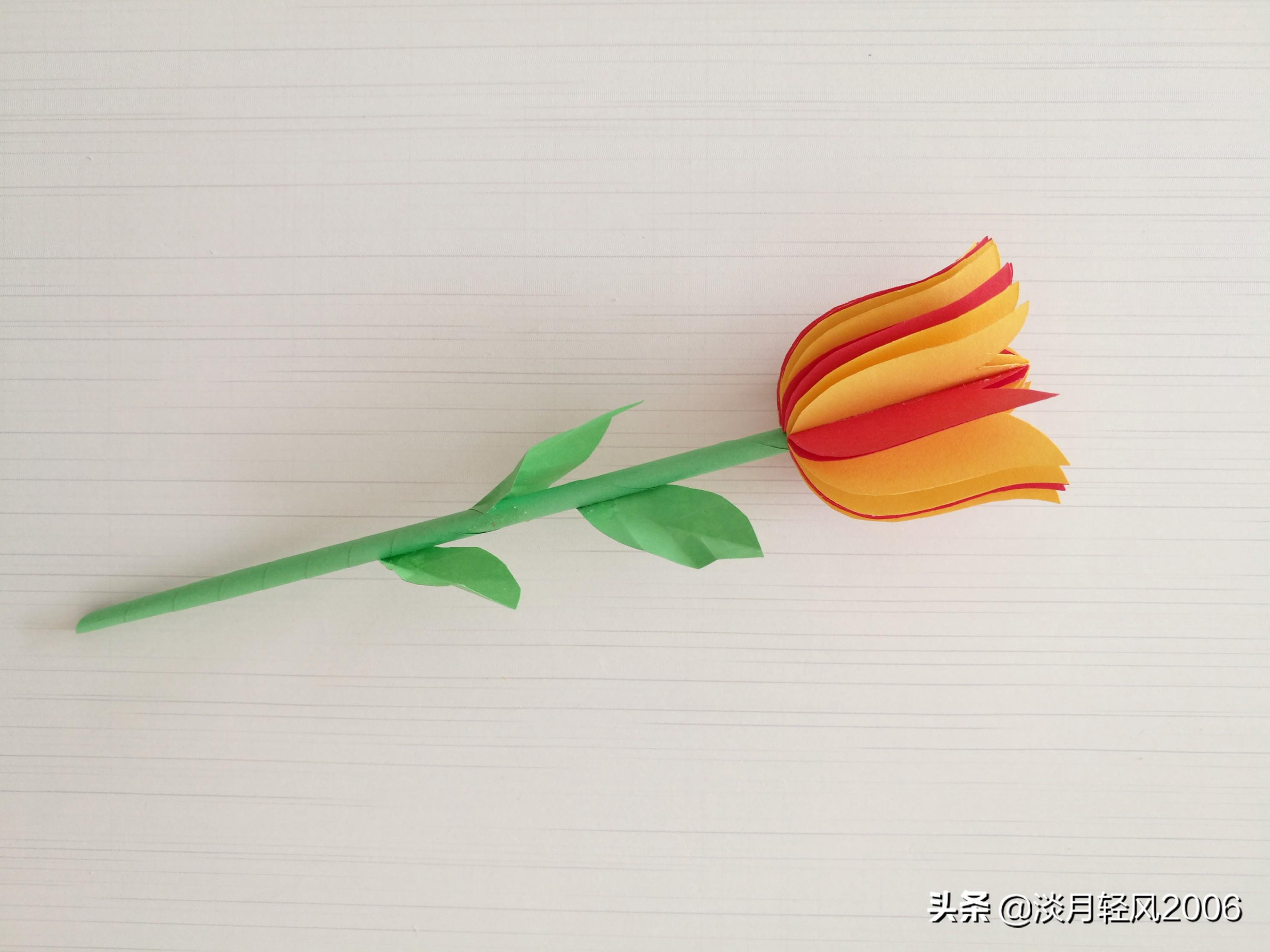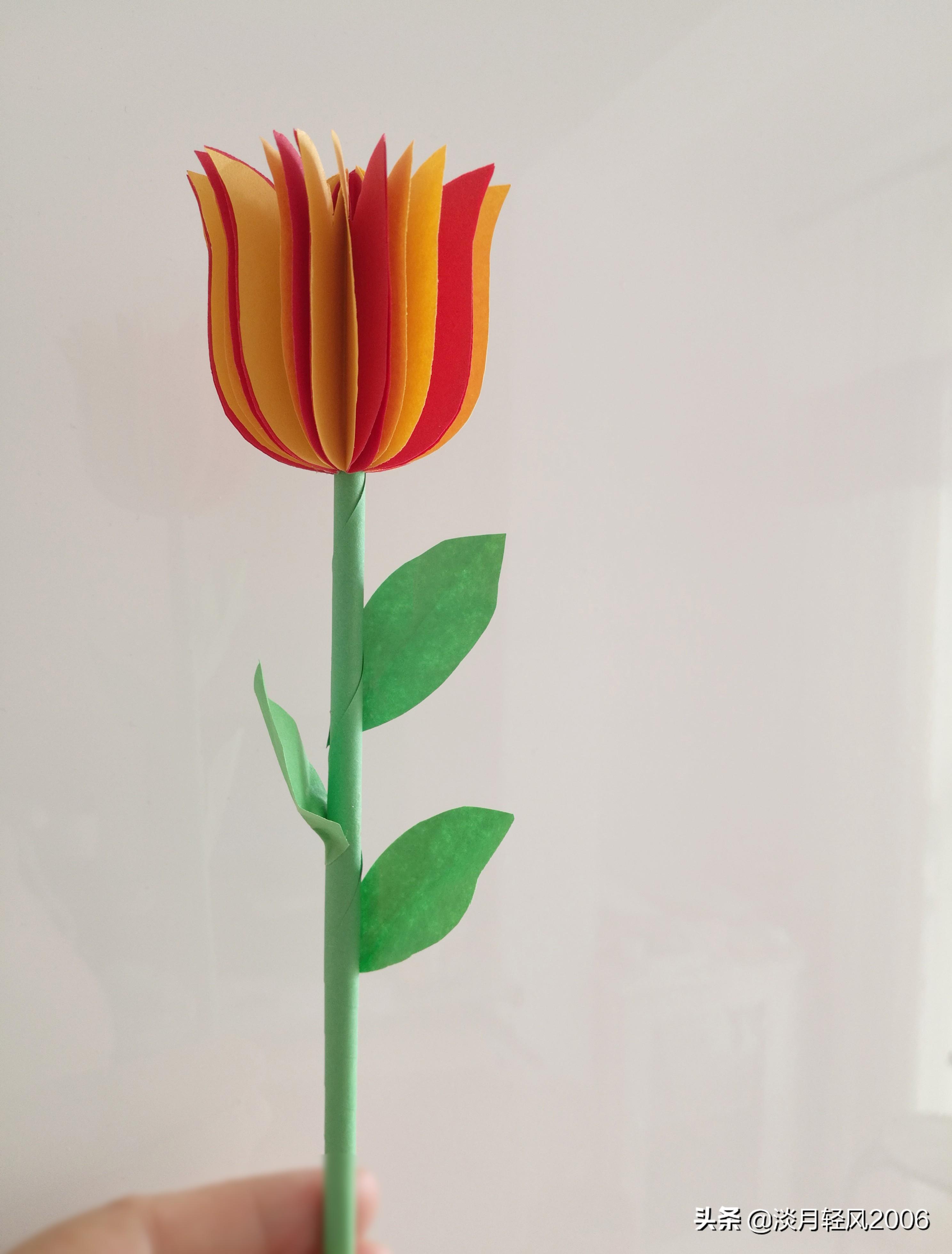 卡紙手工制作花教程?用彩色卡紙做一枝郁金香