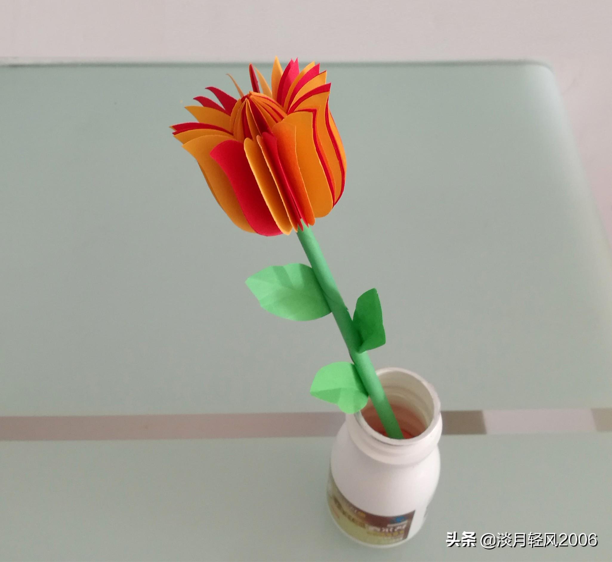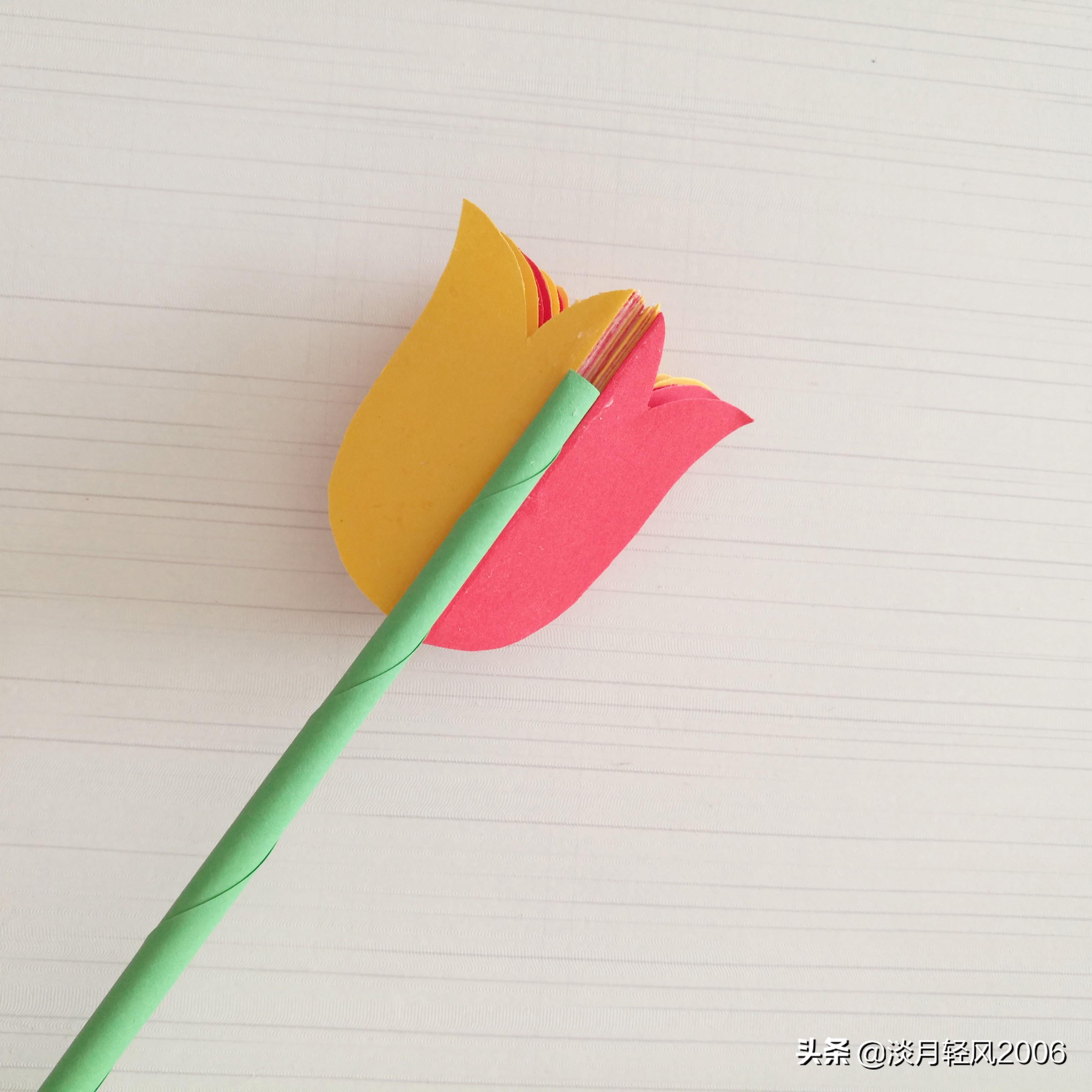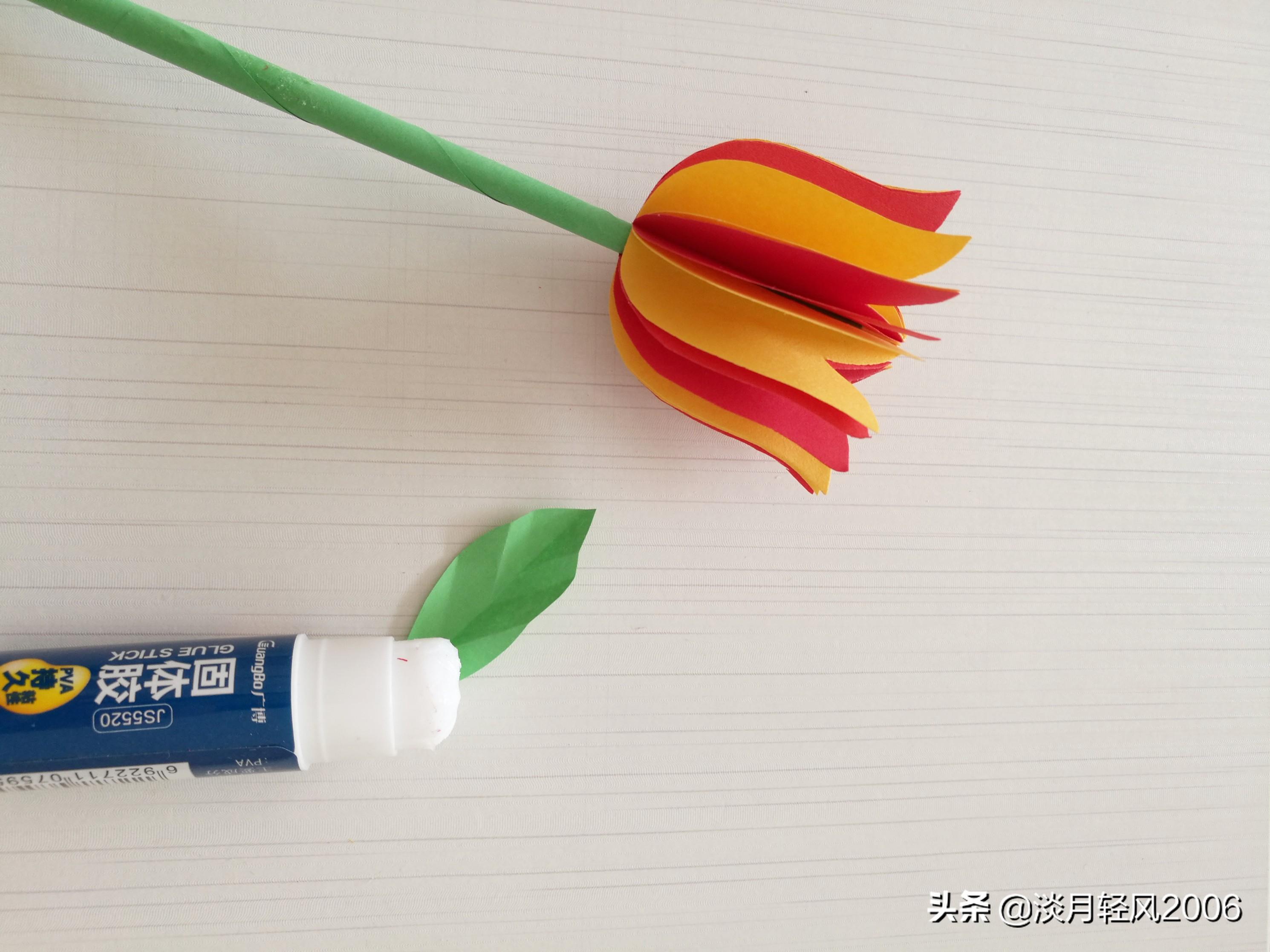 卡紙手工制作花教程?用彩色卡紙做一枝郁金香