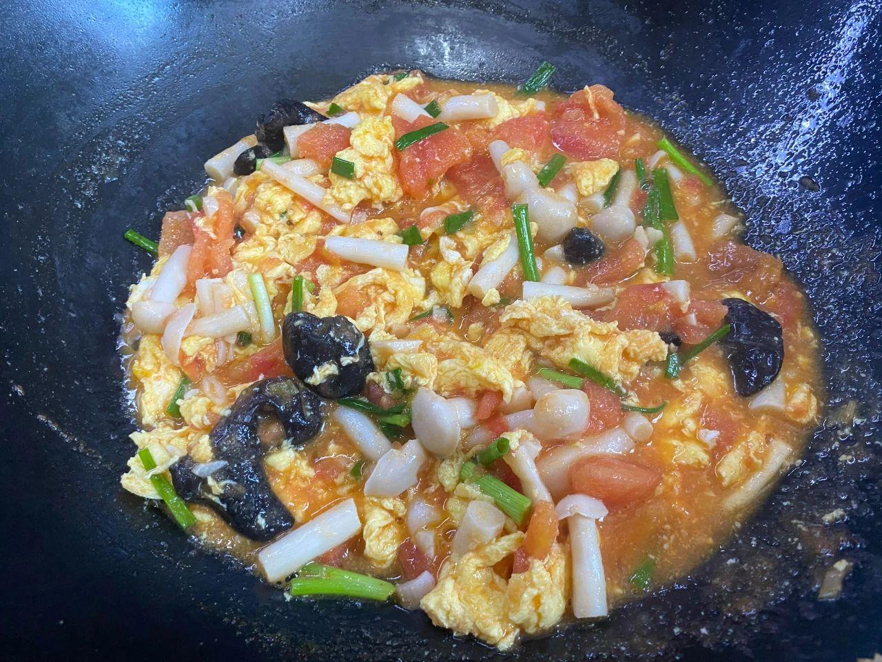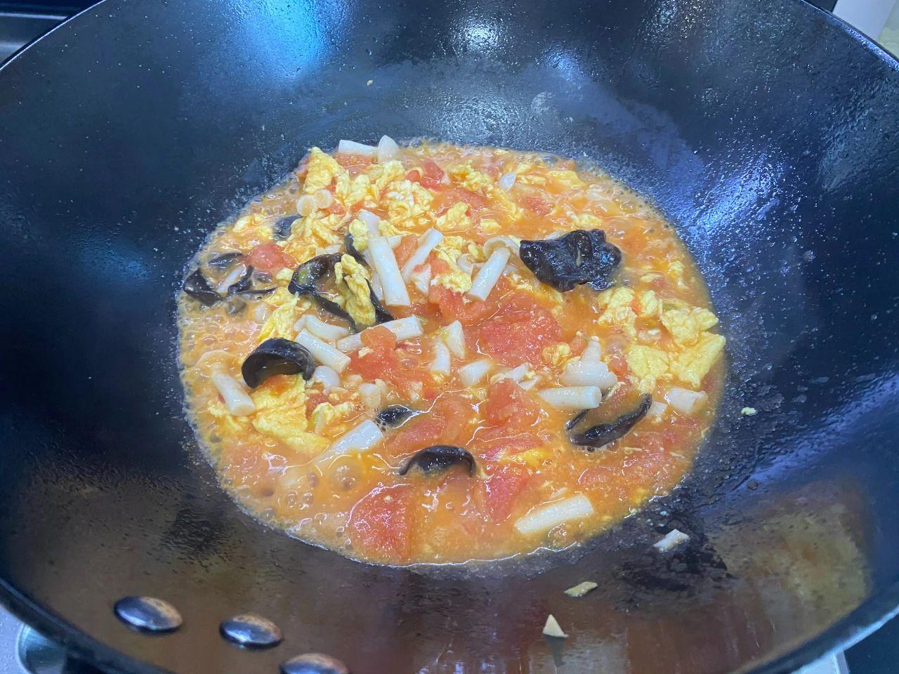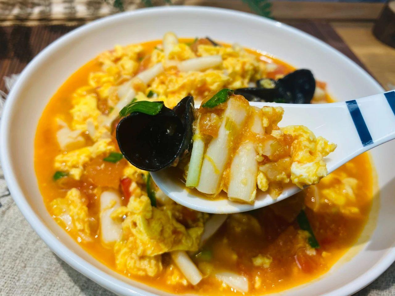 【食材】:番茄、雞蛋、白玉菇、黑木耳、蔥姜蒜。