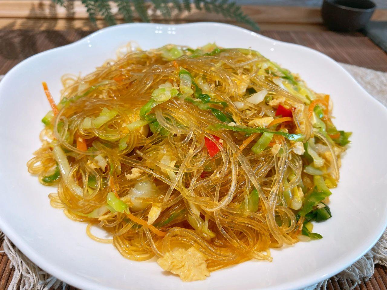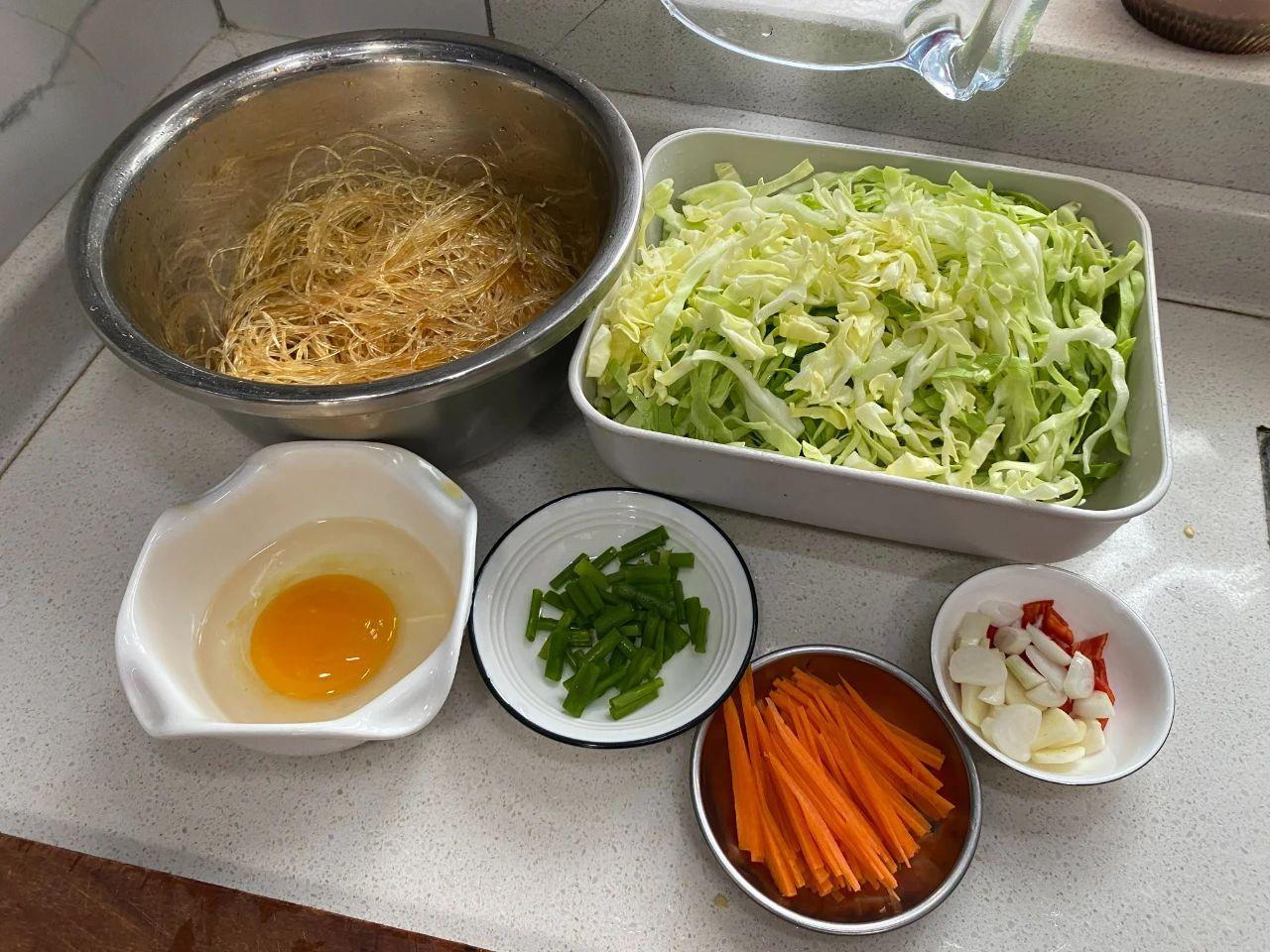 【食材】:粉絲、包菜、雞蛋、胡蘿卜、蔥蒜、小米椒。