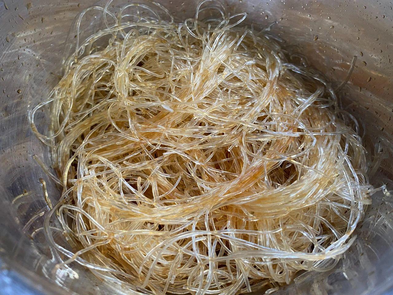 5、放入粉絲,大火繼續(xù)翻炒,炒至粉絲變軟,就可以出鍋了。
