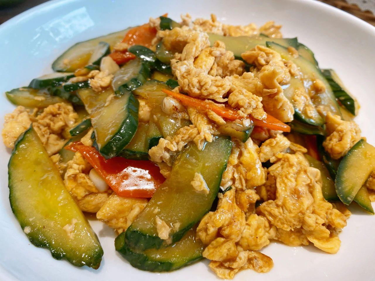 【食材】:黃瓜、胡蘿卜、大蒜、雞蛋。