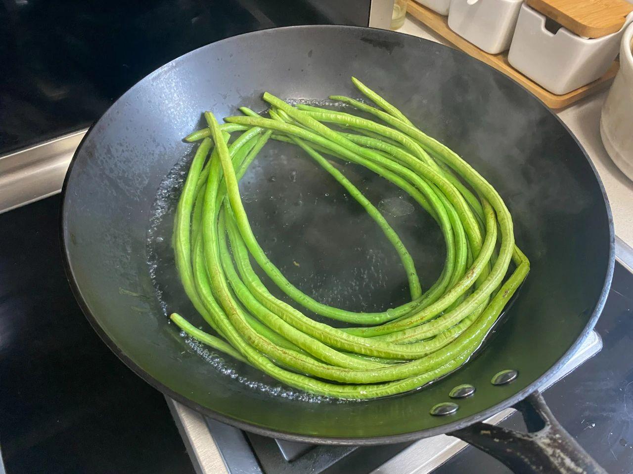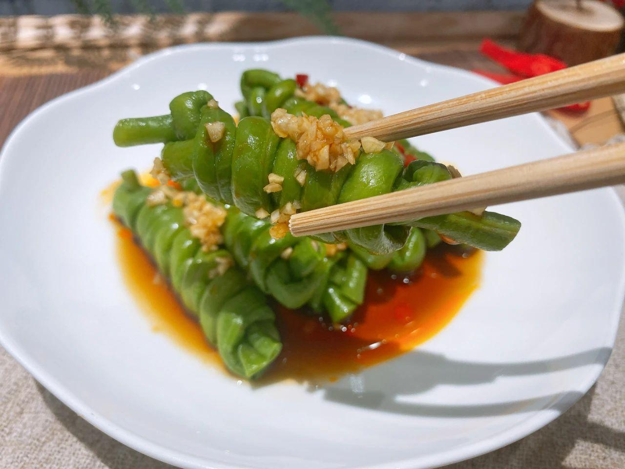 【食材】:豆角、蒜末。