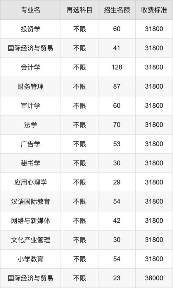 20.國際經(jīng)濟與貿(mào)易:學(xué)費是31800元