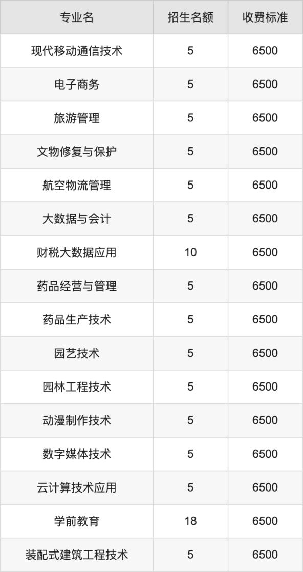 西安職業(yè)技術學院在文科高職專科批招生的各個專業(yè),每年的學費是6500元。招生人數最多的專業(yè)是護理,2024年招30人,學費是6500元。