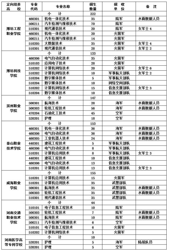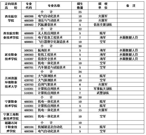 汽車檢測與維修技術,陸軍招收70人,火箭軍招收14人;