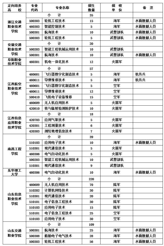 計算機網絡技術,火箭軍招收20人,軍事航天部隊招收10人,信息支援部隊招收15人;