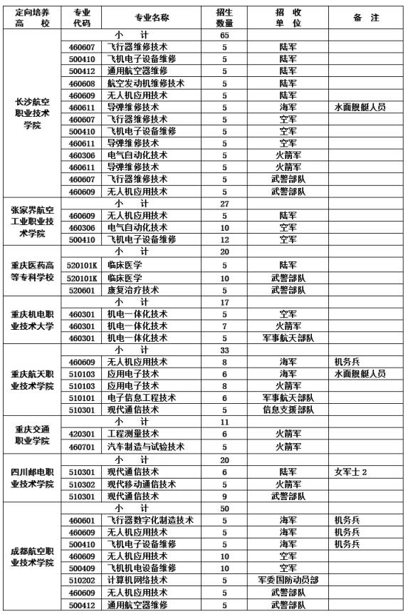 建筑工程技術,軍事航天部隊招收5人,信息支援部隊招收10人;