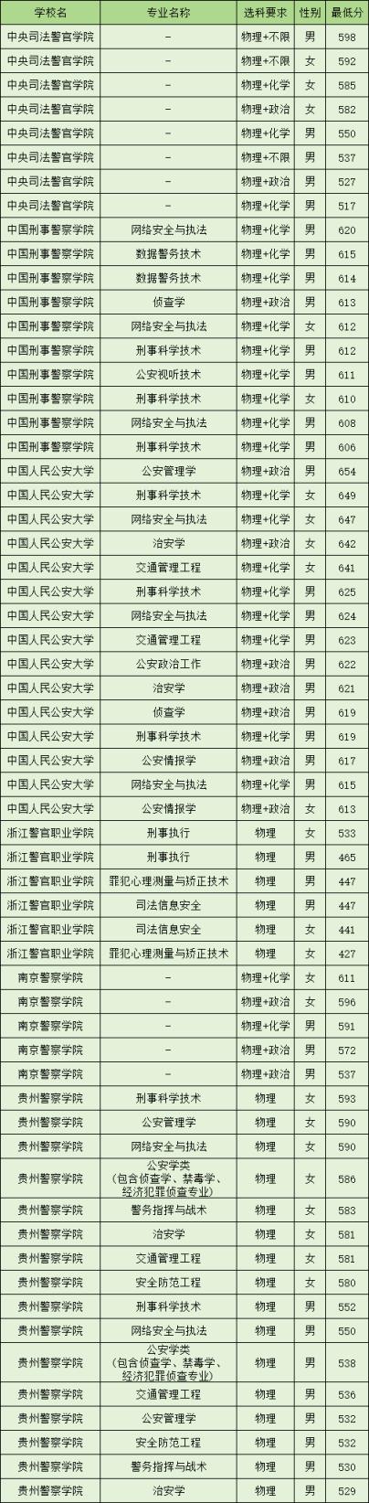 其中,中國人民公安大學(xué)歷史類最低分555分,物理類最低分613分;貴州警察學(xué)院歷史類最低分502分,物理類最低分529分。本文將整理貴州警校提前批分?jǐn)?shù)線匯總。