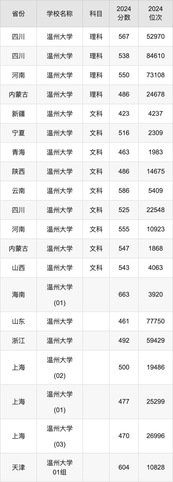 2024溫州大學(xué)錄取分?jǐn)?shù)線匯總:全國(guó)各省最低多少分能上