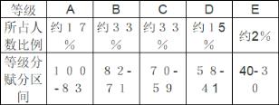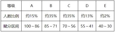 | 等級 | 考生人數(shù)占比 | 分數(shù)區(qū)間 |