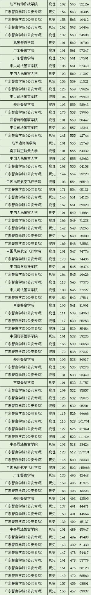 在2024年廣東高考中,武警警官學(xué)院投檔線最高為571分,位次是45809;投檔線最低是562分,位次10700。具體各專業(yè)組投檔線詳情如下:
