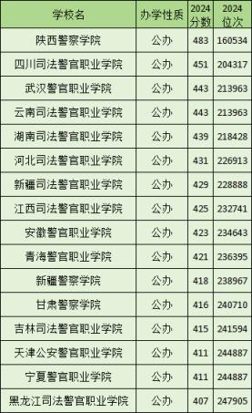 2024年全國??凭齑髮W(xué)錄取分?jǐn)?shù)線位于407分到483分之間,其中陜西警察學(xué)院最低483分、新疆警察學(xué)院最低418分。國內(nèi)前十名專科警察大學(xué)還包括河北政法職業(yè)學(xué)院、浙江警官職業(yè)學(xué)院、安徽警官職業(yè)學(xué)院和河南檢察職業(yè)學(xué)院等。