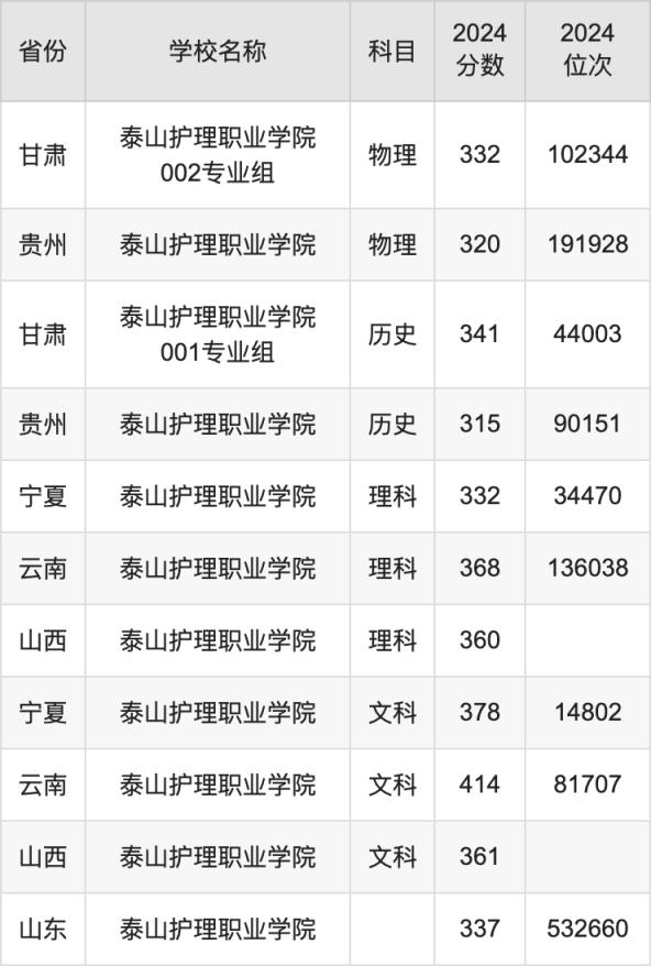 2024泰山護理職業(yè)學院錄取分數(shù)線匯總:全國各省最低多少分能上