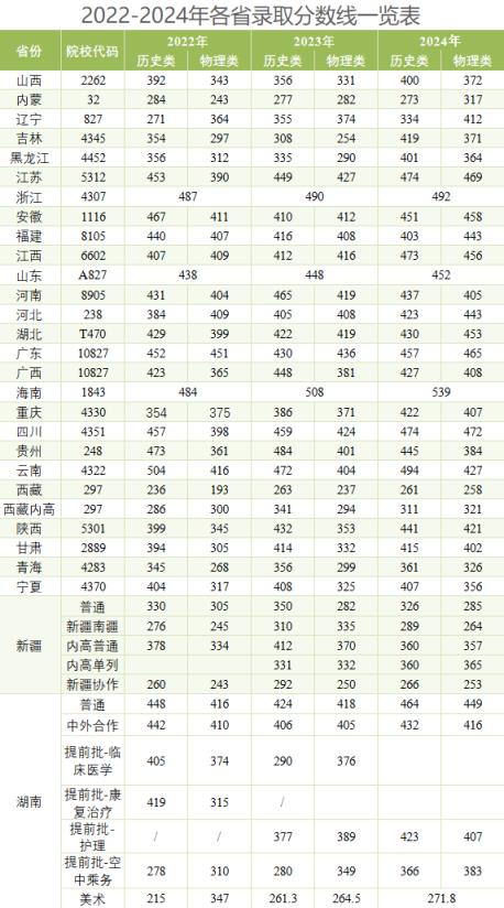 關于2022-2024年長沙民政職業(yè)技術學院的錄取分數(shù)線,由于錄取分數(shù)線會根據(jù)年份、省份、科類及專業(yè)的不同而有所差異,該校2024年在湖南省普通類的錄取分數(shù)線分別464分(歷史類)和449分(物理類),下面將匯總整理該校近三年在各省的錄取分數(shù)線,供參考。