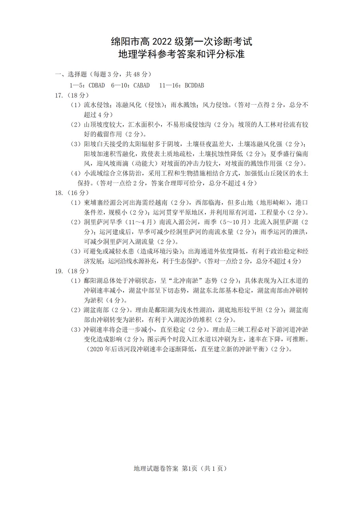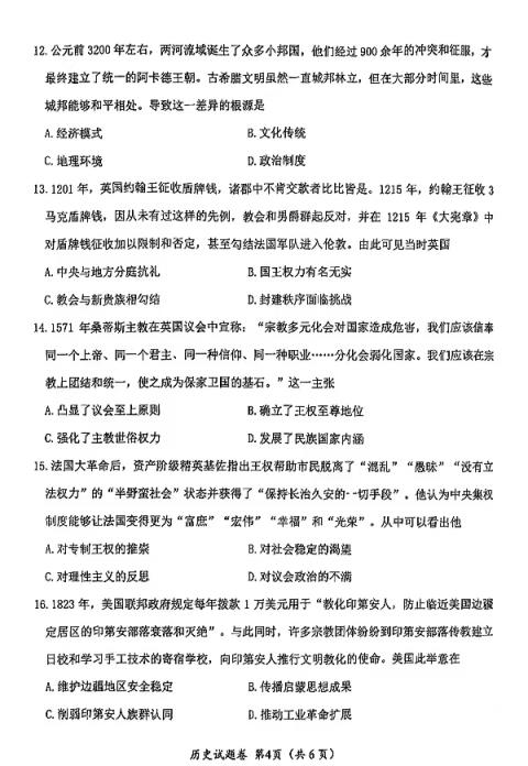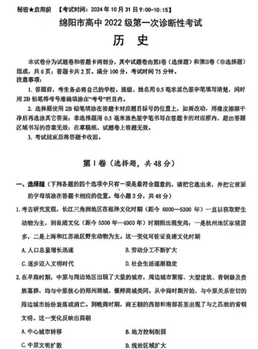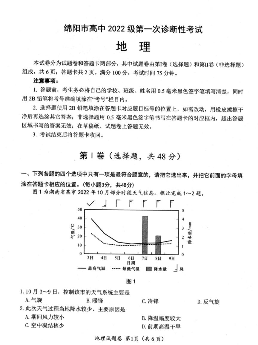 四、2025綿陽市一診考試答案(政治、地理、歷史)