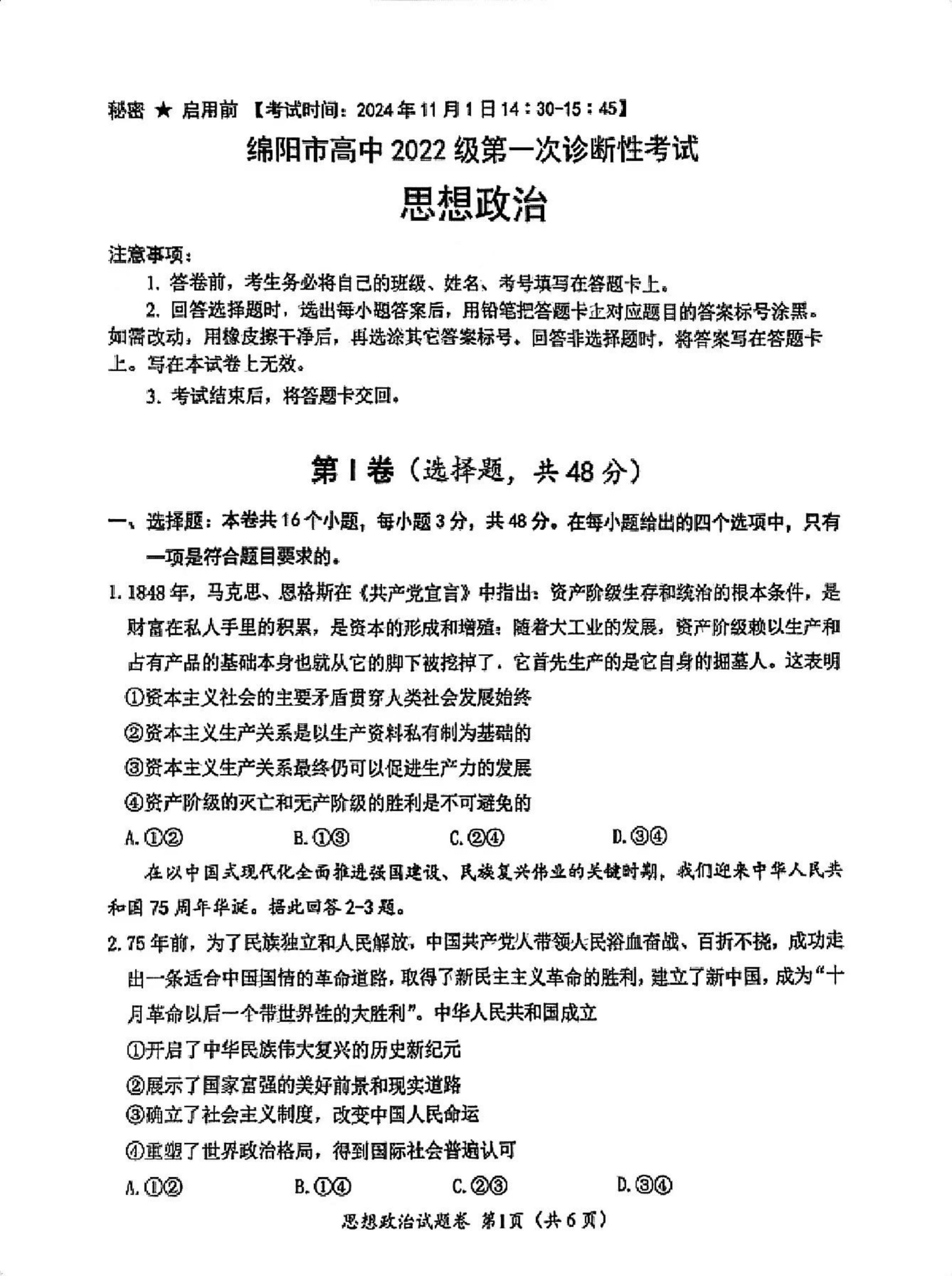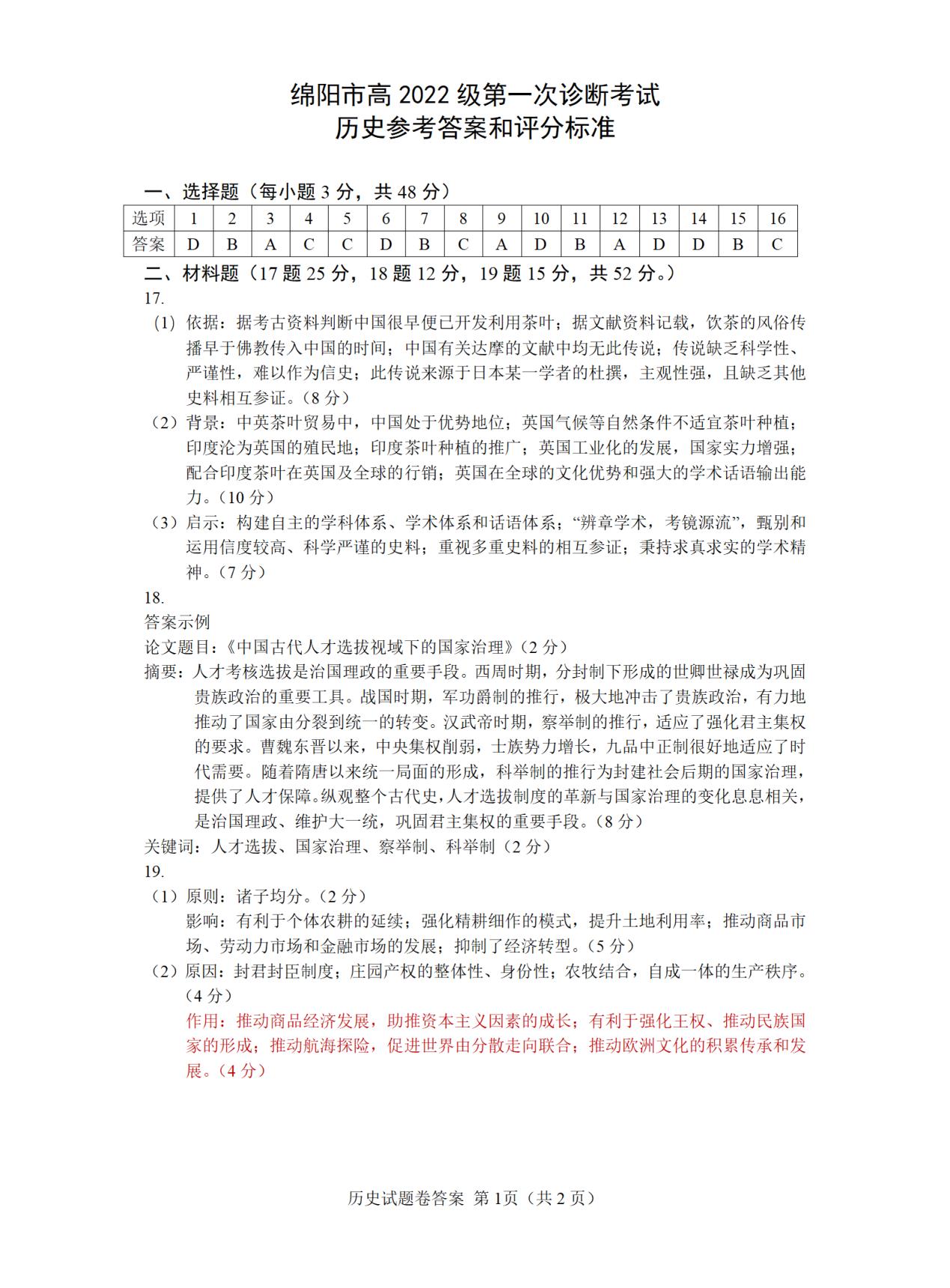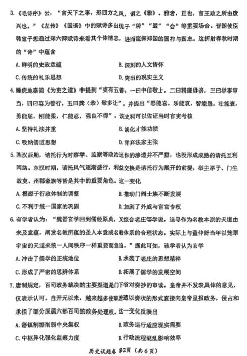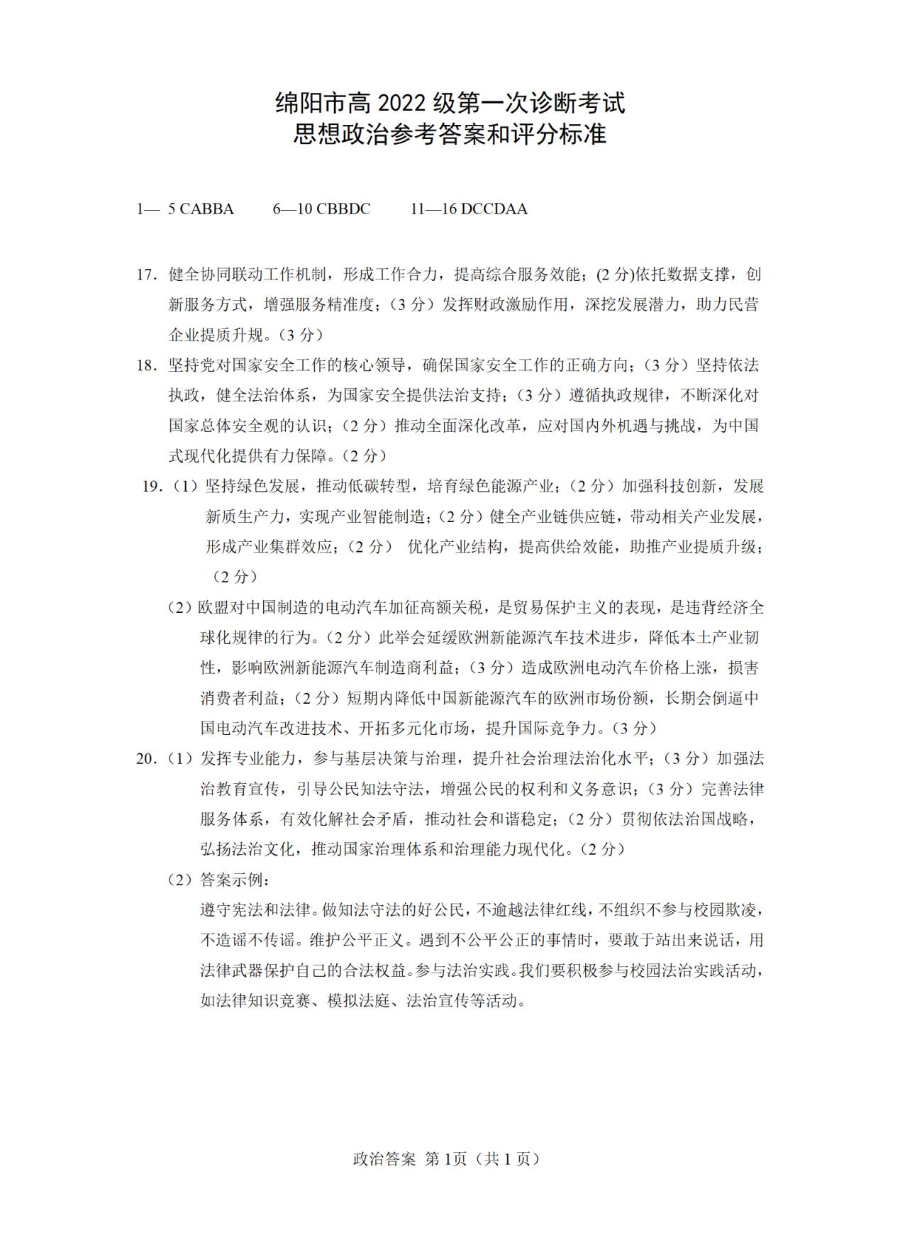 四、2025綿陽市一診考試答案(政治、地理、歷史)