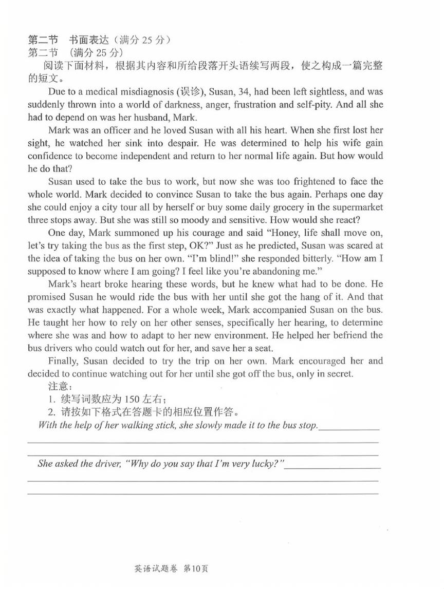 書面表達:25分,要求根據(jù)所給提示或話題寫一篇英語作文。
