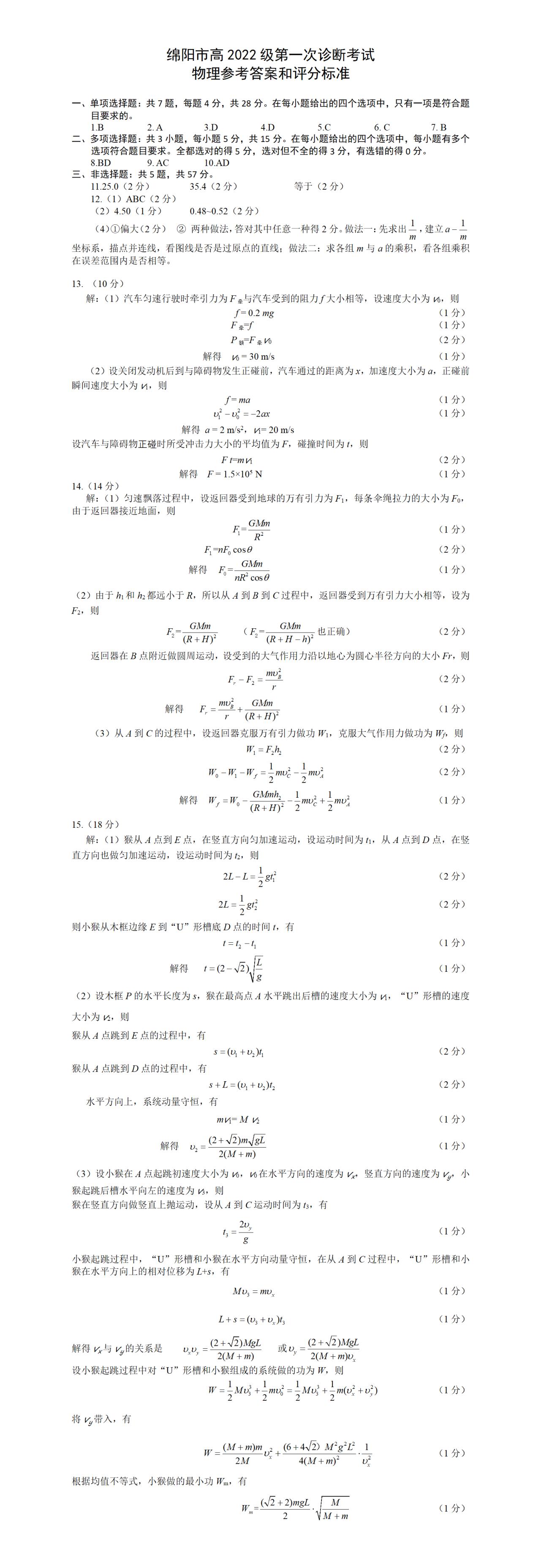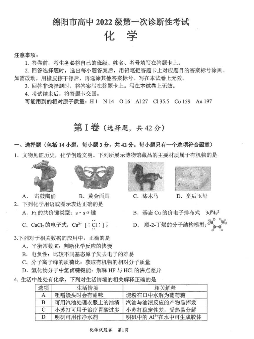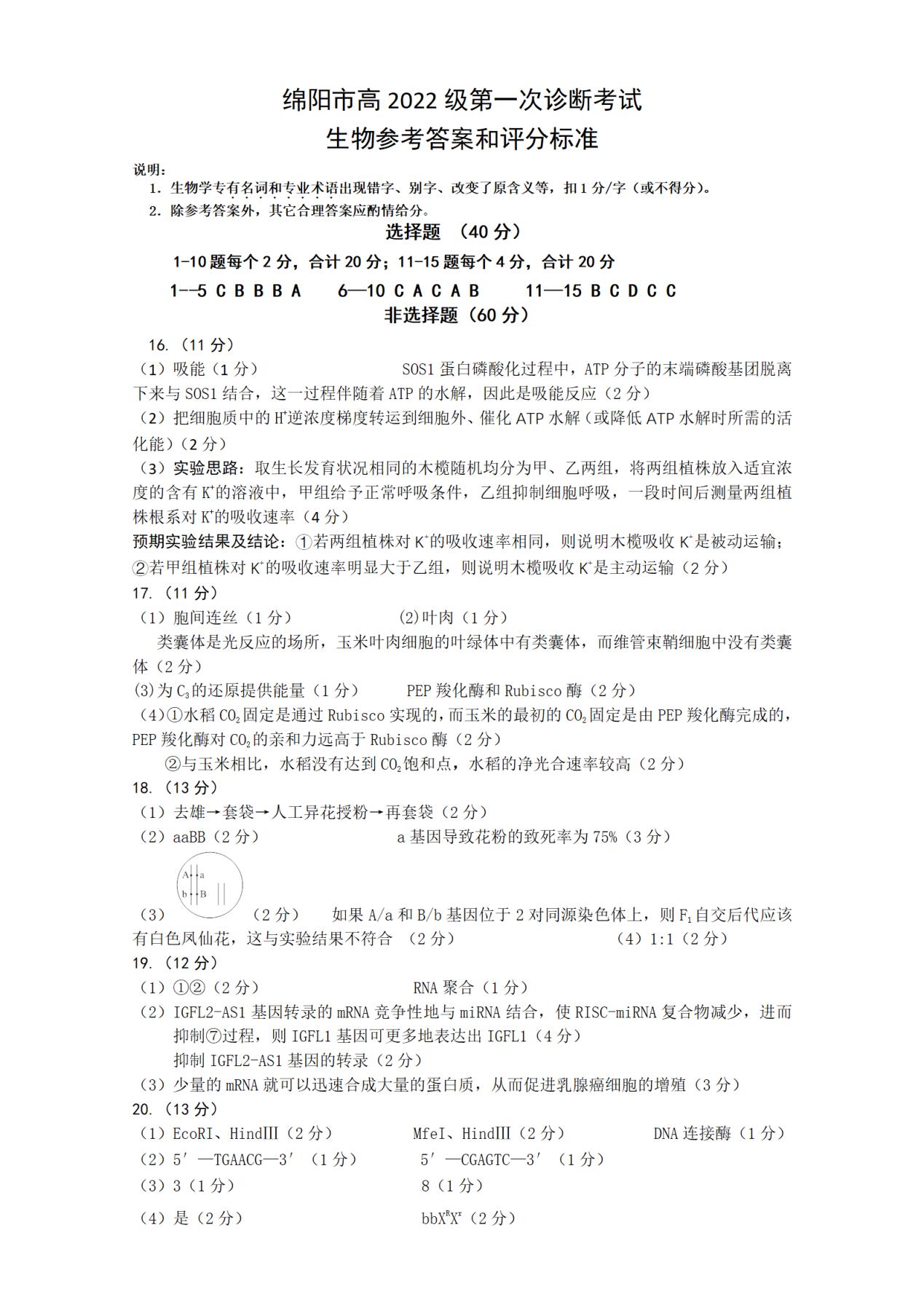 五、2025綿陽市一診考試答案(物理、化學、生物)